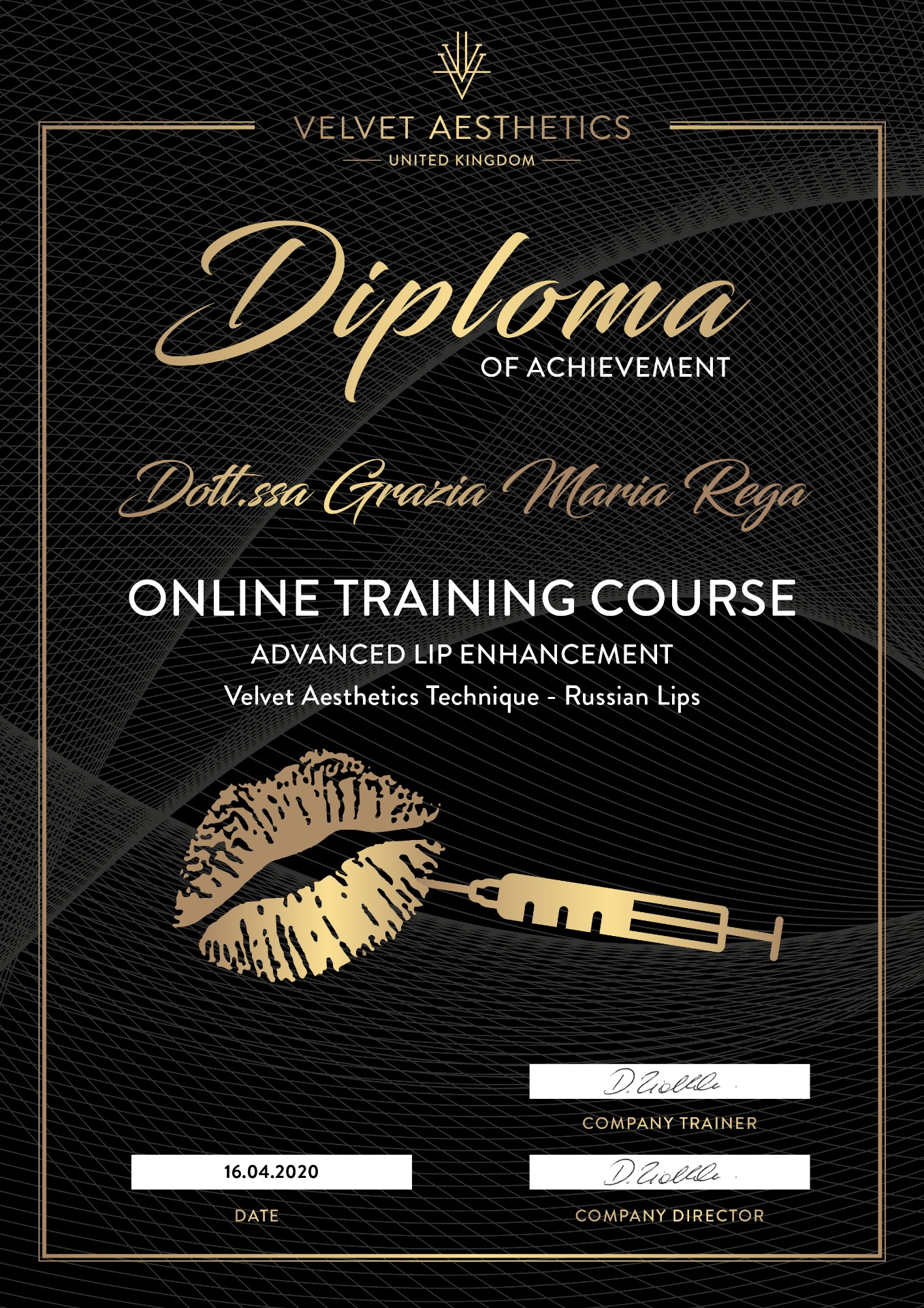 NELLA CLINICA INTERNAZIONALE VELVET CLINIC, ABBIAMO RICEVUTO IL DIPLOMA PER IL CORSO AVANZATO DI RUSSIAN LIP FILLER
